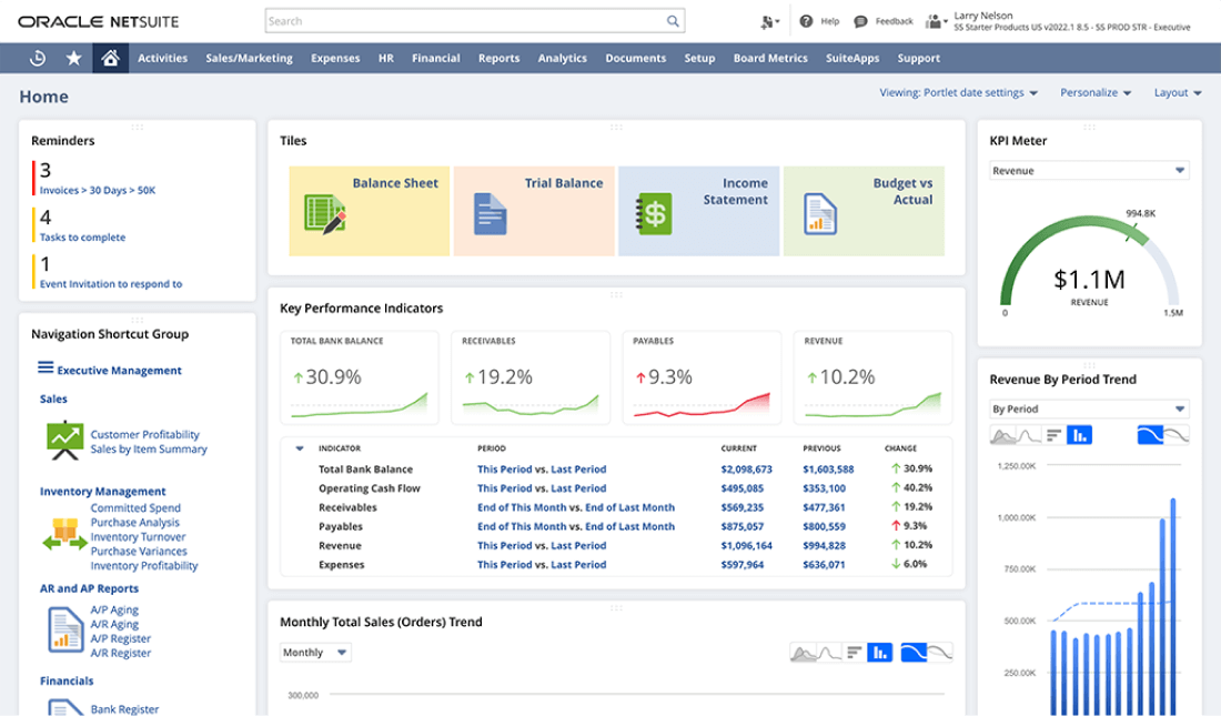 Unifying all business applications in the suite means all of your key data is centralised. That 360-degree, real-time view of your customers and business combines data with visual analytics to generate meaningful and actionable insights. Every SuiteSuccess Edition comes with predefined role-based dashboards, reports and KPIs that help employees make better, more data-driven decisions.
